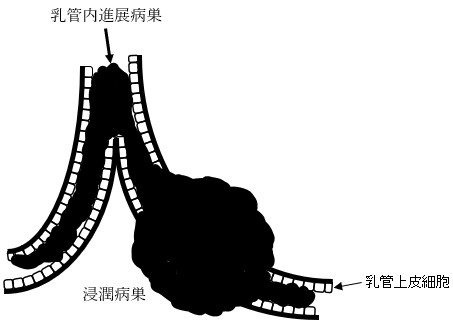 図2. 乳管内進展病巣と浸潤病巣